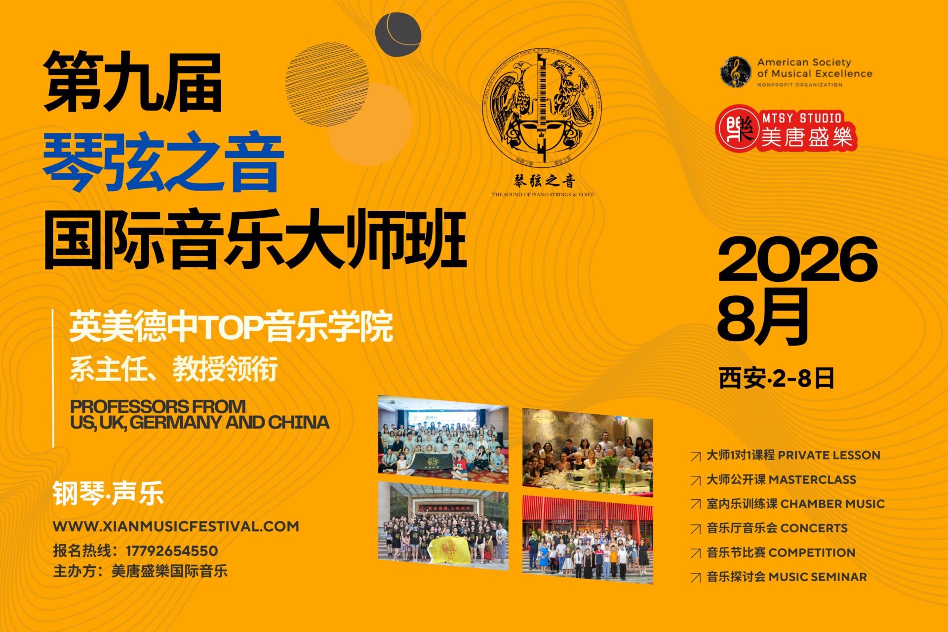 音乐,没有国界之分,交流,却有中外沟通。美唐盛樂工作室旨在为中国带来更高端的音乐盛宴,为学子搭建更广阔的视野平台,现面向全球招收音乐大师班学员。。